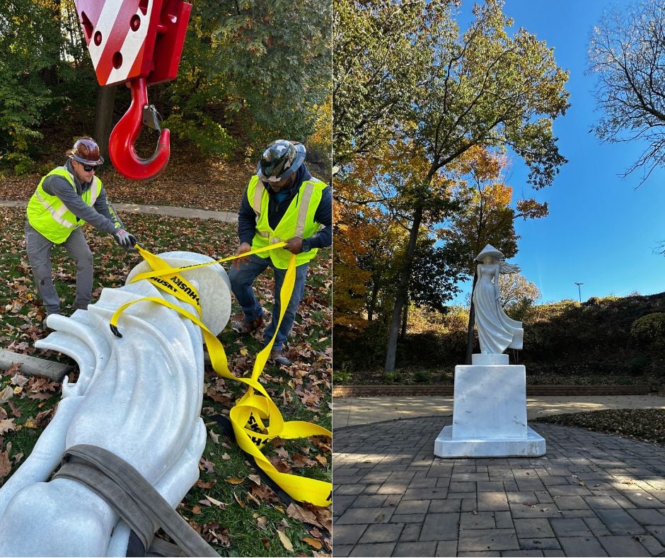 The stone statues were shipped from Marble Mountain in Vietnam to Cleveland, where Milano Stone & Restoration carefully unloaded the pieces and installed them in their appropriate places.