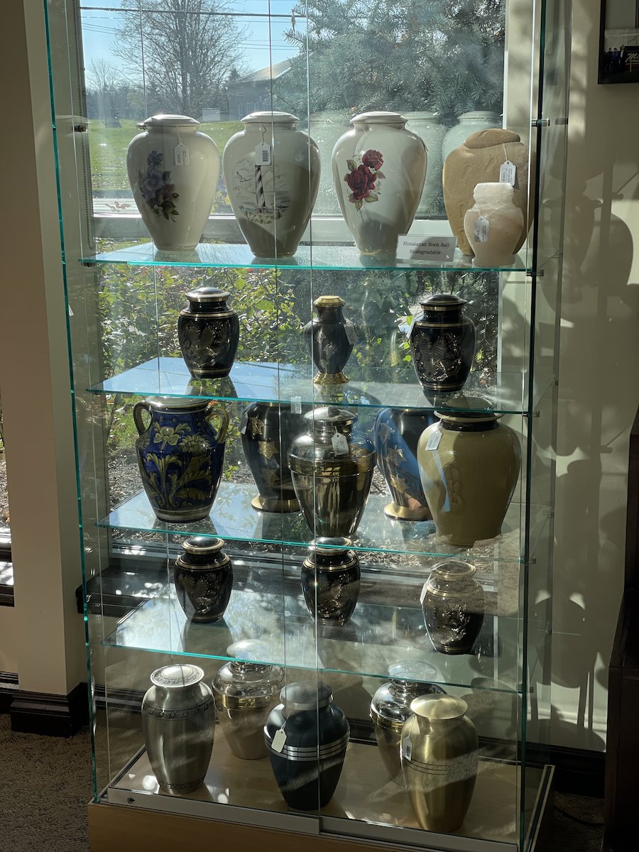 At Milano Monuments, we have a large selection of exquisitely decorated urns in a variety of sizes, shapes and styles on display right in our showroom on Brookpark Road in Cleveland.